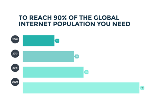 According to a survey research by Common Sense Advisory on the languages spoken by the world’s Internet population, since 2020, content needs to be localized into at least 48 languages to have about 90% of all internet users understand and enjoy it.