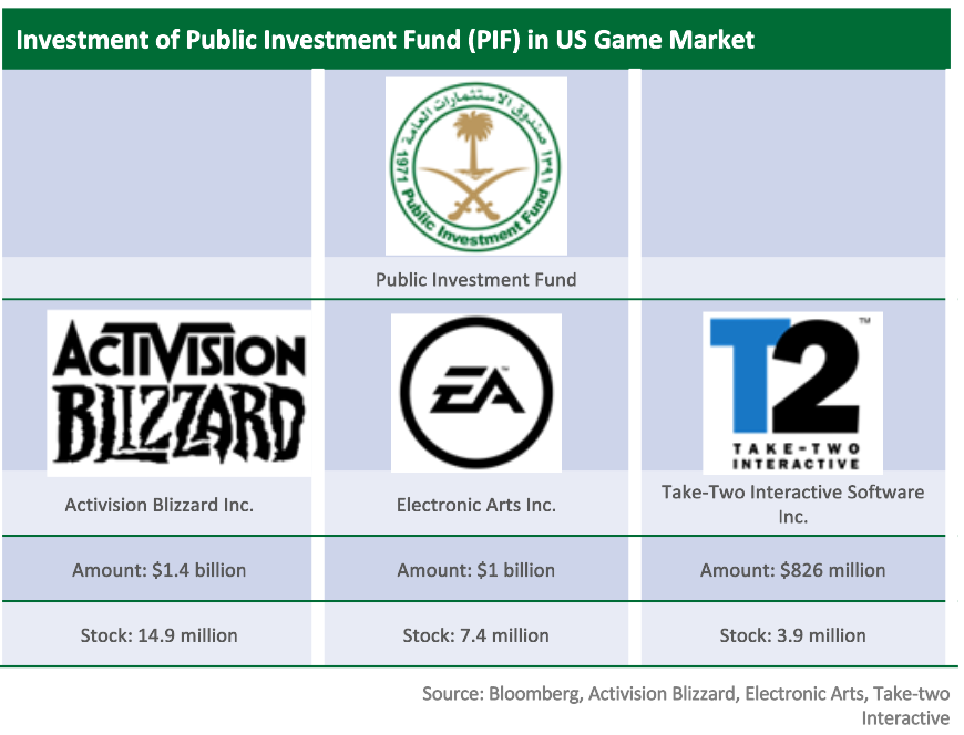・The Public Investment Fund (PIF) led by the Kingdom’s crown prince acquired $3.3 billion of stock in three major game publishers in the fourth quarter of 2020.